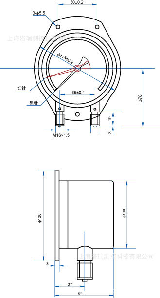 - 备 注:双针压力表YZS-102主要适用于机车车辆上用来测量液压系统或储气缸内的压力;仪表可同时测量两个相同或不相同的压力,两者压力之差一般应不大于标度范围上限值的1/3。