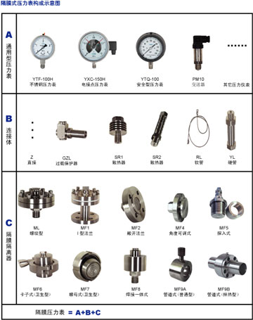 型号/耐震/表盘直径/表头材质/连接器/隔离器/膜片材质/压力范围/法兰标准/法体材质
